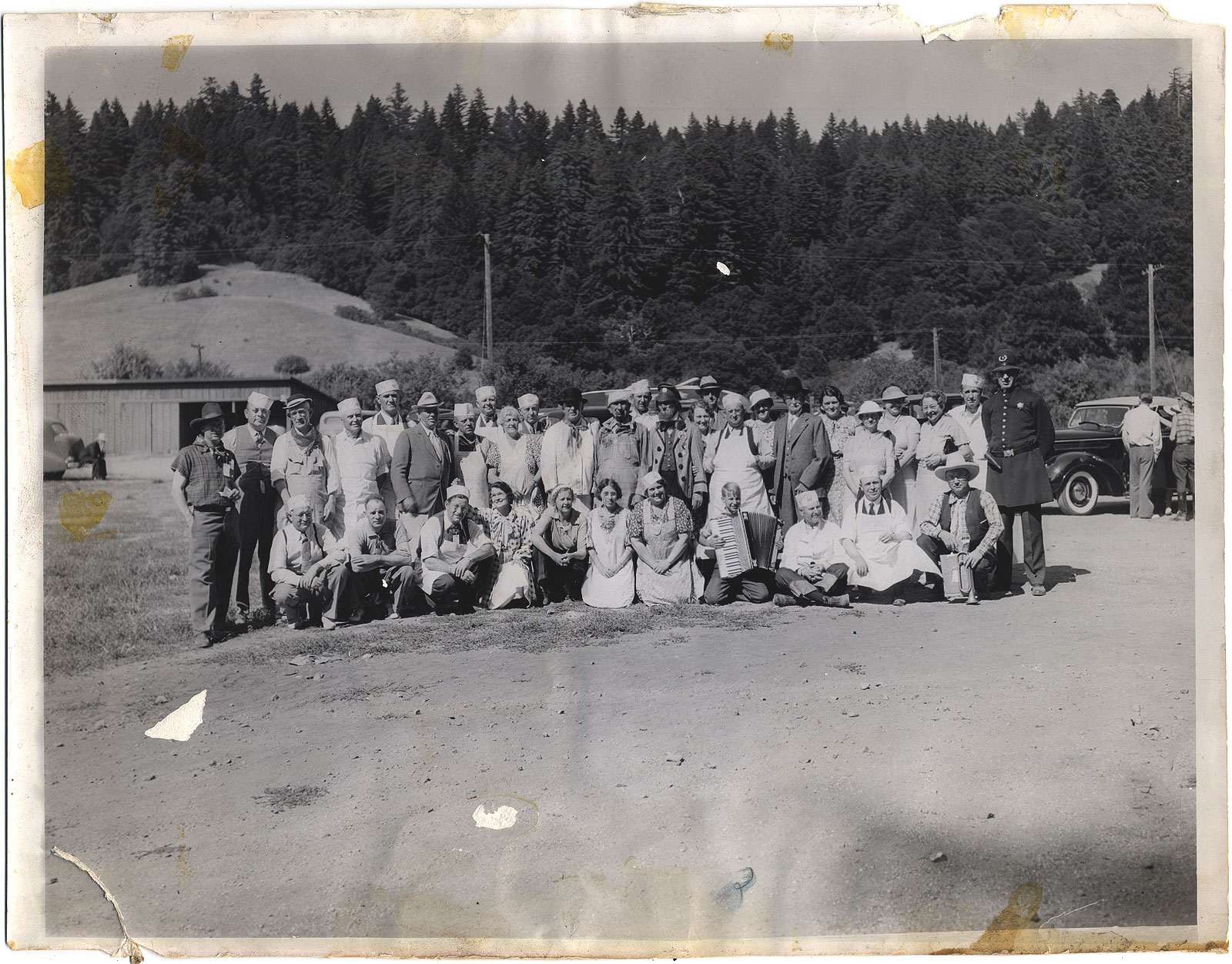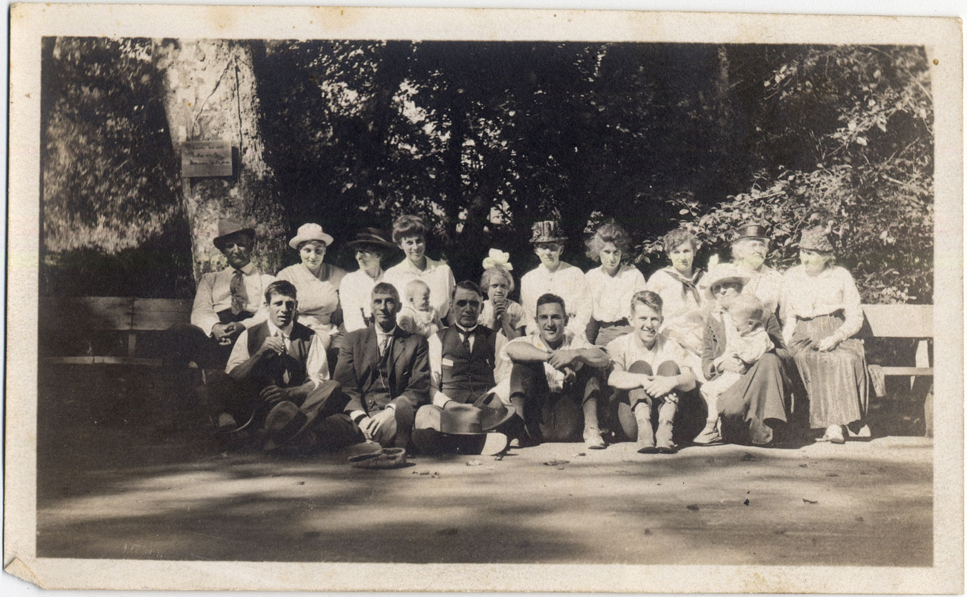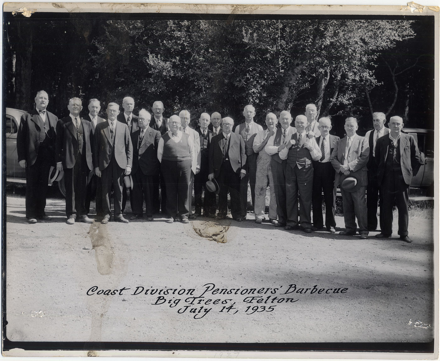 date: 7-14-35 location: Big Trees, Felton photographer: print: 8" x 10" landscape b&w obverse data: reverse data: 11th from left: J. Balentine |