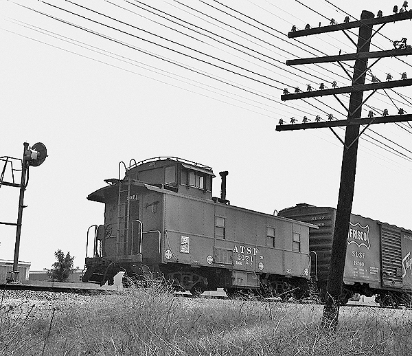 In the photo, the train was just beginning to pull past the signal seen over the headlight, after waiting for the preceeding train to do its station work at Anaheim platform.