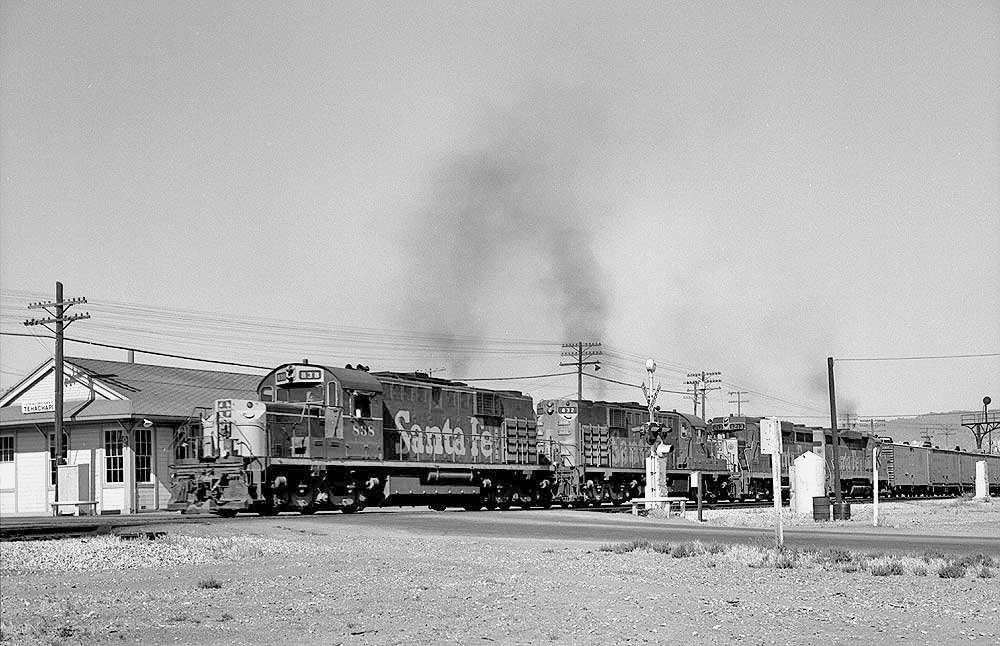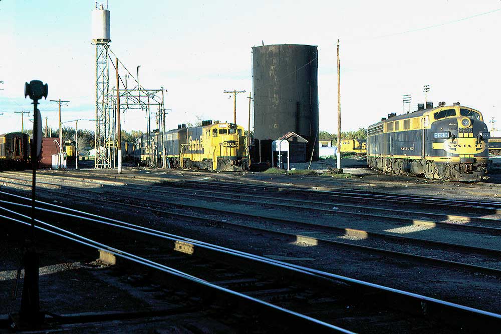 Clovis, NM; October, 1974. No, the 263C is not an F-3, but rather, one of a group of F-7's that the Santa Fe ordered with chicken wire, rather than stainless, grills.