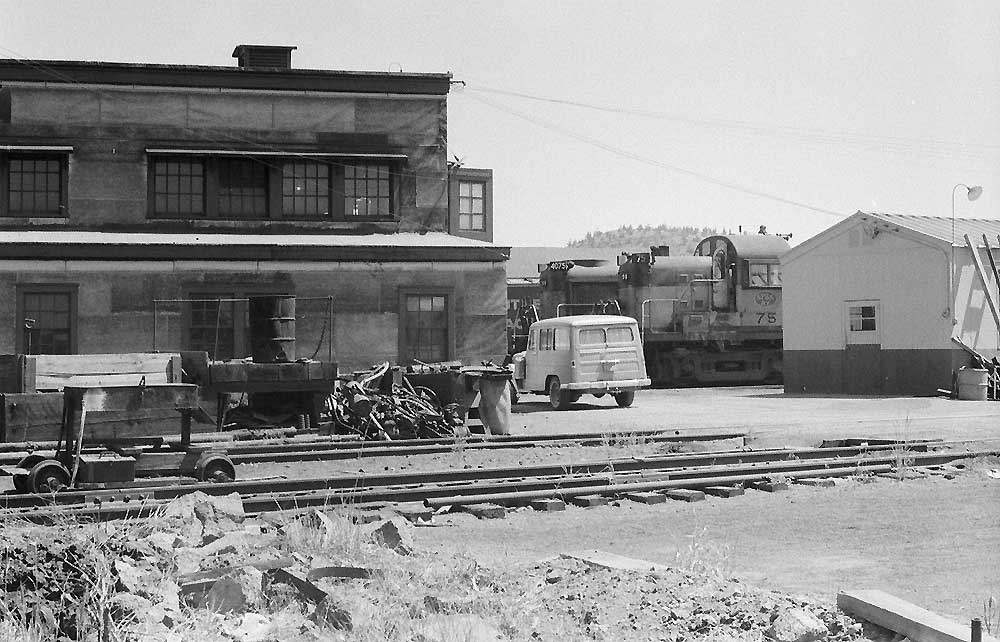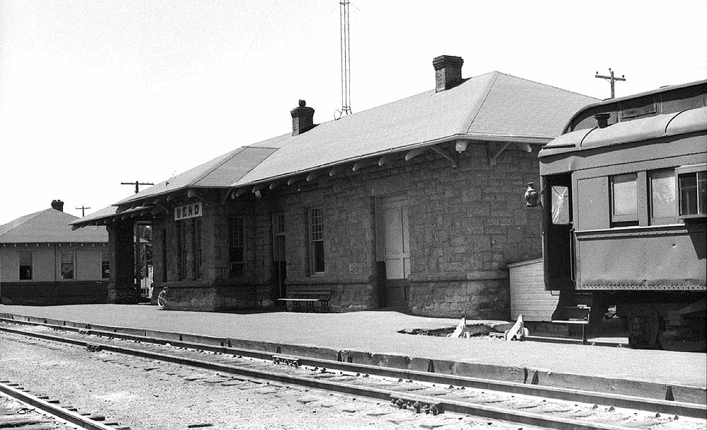 Bend's depot was a cut stone beauty, the terminous of SP&S/BN mixed trains that worked down the old Oregon Trunk from Wishram. Combine #273, depicted in these photos, was one of two bay window combines used in this service, which lasted until Amtrak. Afterward, the combines were used as cabooses for a short time.