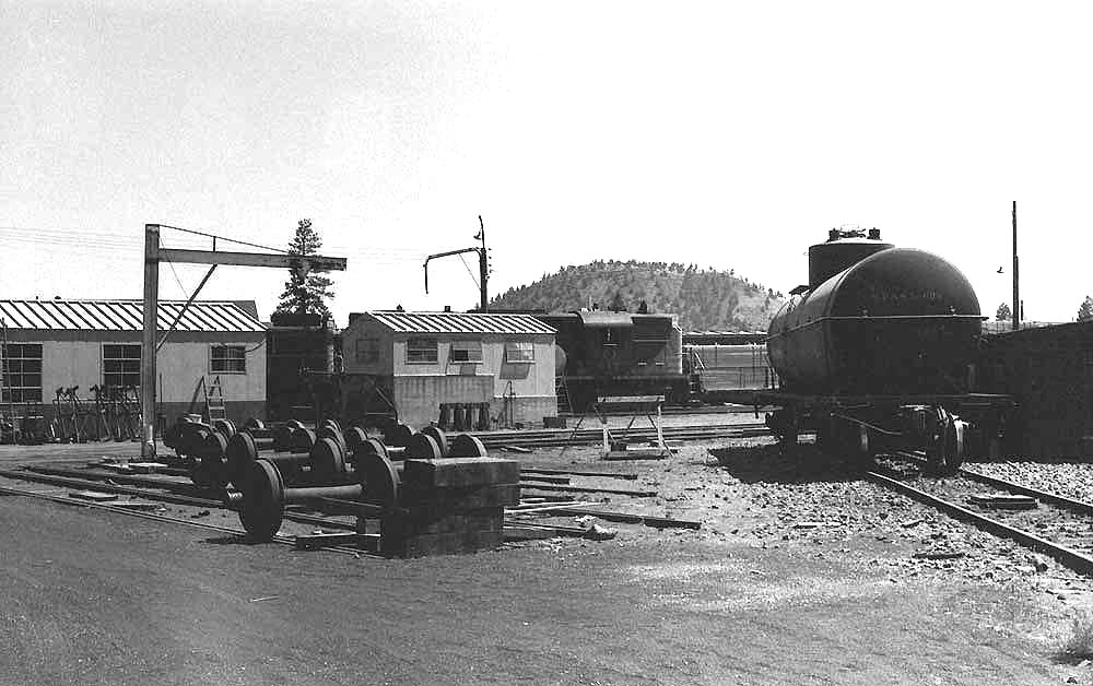 Somehow, the newly-ex SP&S enginehouse in Bend (above) reminds me of the B-52's song Love Shack: Funky little shack! Funky Little shack! This tarpaper-sided affair out-funked anything that Wx4 staff ever saw on the Milwaukee Road, which is saying allot. |