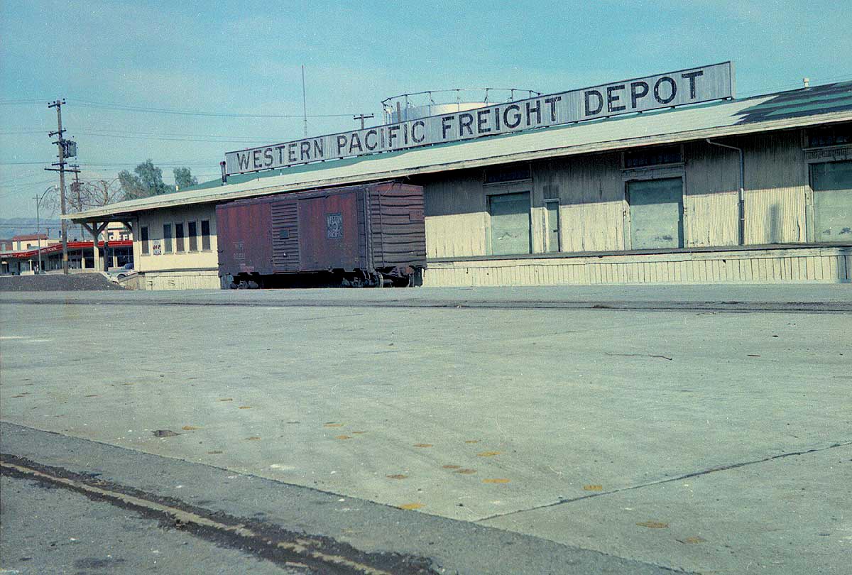 (above) West San Jose Freight Depot in August, 1965, looking northeast: The storage tank looming over the building is at the site of the present day San Jose Arena. The building survived WP tennancy for many years, only meeting demolition in favor of condominiums after the century's turn. - Wx4 photo