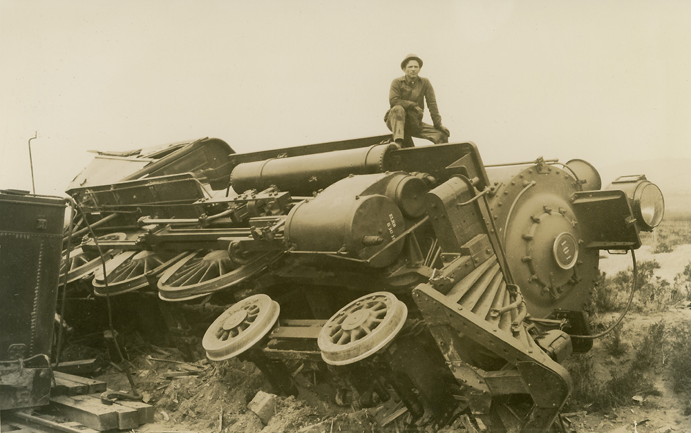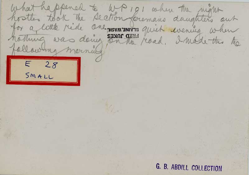 Rock and Roll, Hoochie Koo NEW 5-19-24 I don't know what it was about hostlers (Today's hostlers, I don't know.), but they seemed to have a proclivity towards minor disasters born of a variety of preventable human failings - like the classic locomotive-in-the-turntable-pit. Here we see an unknown guy - but doubtless not the perpetrator - sitting atop Western Pacific #101, which itself resting at a rather awkward angle of repose. The note scribbled on the back of the photo explains things much further than what the actual words say: |