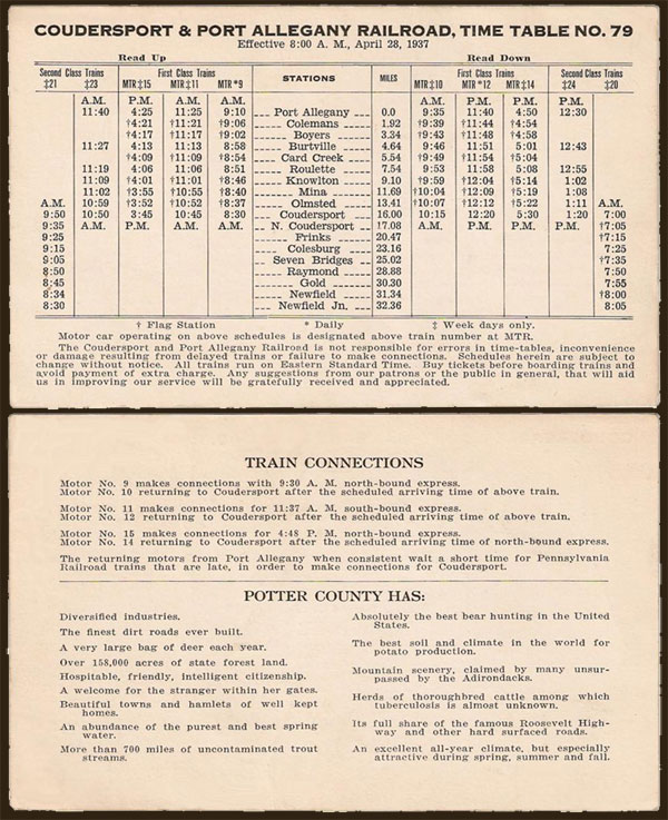 | We are all familiar with the Official Guide of the Railways and successor Official Railway Guide, which date back to 1868. Less well known are an unknown number of similar national, regional and city guides that came and went over the years. The latter came in variations from a simple two-sided card listing the trains calling upon a town, or at the other end, a large city usually commanded a book listing not only local trains, but regional rail, steamboat and stage connections as well. These schedule compilations tended to be small enough to fit in a pocket. Some of tem are so miniscule that they are best read in PDF form. |
