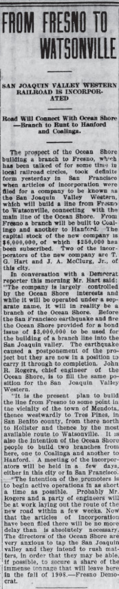 We ran across the article at right while researching our epic Armona passenger trains story. It seems that the Ocean Shore's luminaries had trouble holding their liquor, but come to think of it, maybe the articulateds represented a revival of the plan during a later extended drunk.