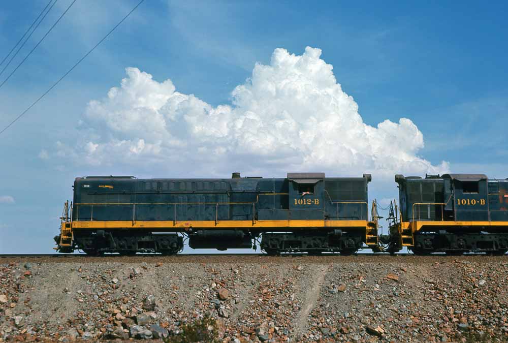 Next we have three more Baldwin shots, starting with a nice broadside view of the 1012B framed in front of a developing hunderhead in the background. The other two shots are either of different train that same day or of a different day as two more leased SP Baldwins have joined the #5254 in the consist.