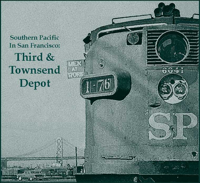 | Southern Pacific constructed its Third and Townsend Streets depot as a "temporary" structure to serve the 1915 Panama Pacific Exposition. It was SP's intention to eventually build a permanent "downtown depot" at the foot of Market Street, but this never came about. By the 1970's the station building was so dilapidated that SP was finally forced to replace it - with a structure one block further away from the city center. The new depot at Fourth and Townsend (which began to be called Fourth and King with the coming of Pac Bell Park) opened on June 21, 1975, and today serves Caltrain. For the last decade, the current depot has been regarded as temporary or permanent, depending upon the political /economic winds of the moment. As of 10:59 pm, 10-05-03, the Fourth Street facility is temporary, in favor of a downtown terminus at the Mission Street site of the Transbay Terminal bus depot. Interestingly, Southern Pacific once actually had a downtown terminous, at Market and Valencia Streets, but that San Francisco and San Jose structure only served until about 1872, when operations moved to..4th. St. Shortly, Wx4 will present a history of SP's early San Francisco operations, Stay tuned. |