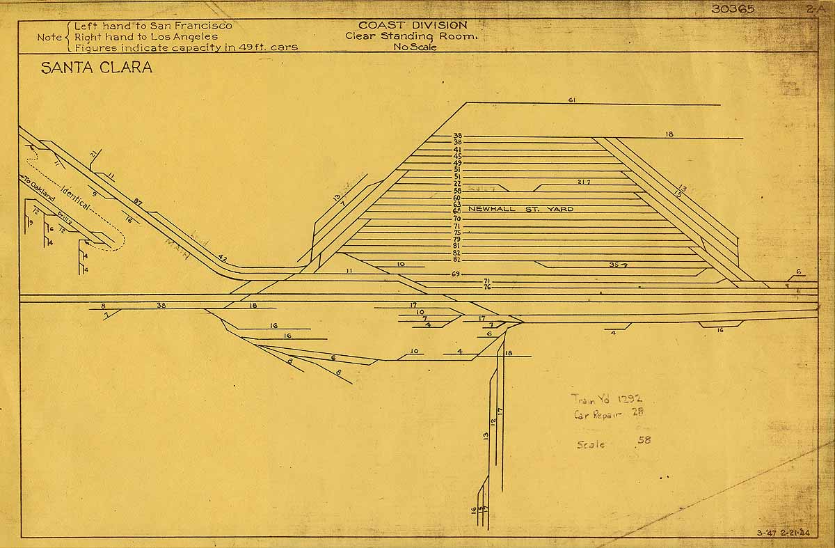 Elsewhere, you'll find a 1947 Newhall Yard Track Capacities map. |