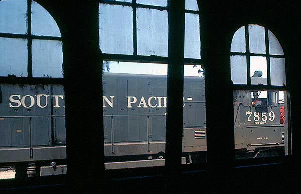 Carrizozo Subdivision train crews frequently treated train orders more as suggestions for better living than as literal commandments. Rather than have their progress slowed by the pre-conceived notions of some guy sitting in a dark room one state away, crews routinely arranged what was known as 'jawbone meets' via radio. They'd go something like this: Hey Otis, where in the heck are you? We're fallin' down here at Arabella. My second unit's gone belly up and the lead unit's only loading a little. Where you at Doug? We're waitin' on you at Leoncito. Well, why don't you come on down and head in at Pastura. We ought to be up there directly, if I can keep this junk moving. Okay Otis, let us know if we need to cut-off and come 'n get ya. You bet, Doug! They could get away with this because: a) they knew that they were someplace that the dispatcher couldn't hear them; b) local officials, who wanted to 'move freight', could practice plausible deniability; c) heck, there were no other trains anyway. Nope, this wasn't the best railroading, safety wise. Woe be to the poor motor car foreman who unexpectedly met a train that wasn't supposed to be there. The practice stopped after SP started to install radio repeaters so that train crews could talk directly to the dispatcher. Jawbone meets tended to upset the dispatcher. (left and above) the view from the Tucumcari's "crying room" (crew calling office / register room), September, 1983 |