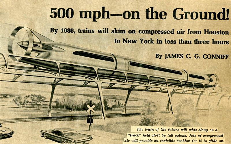 All told, we miss those days that were so amenable to the likes of Helixtram and a 500 mph hot air train, even if the latter's appearance does seem to allude to the sex act...Oh wait! Are we confusing Mechanix Illustrated with Popular Mechanics?