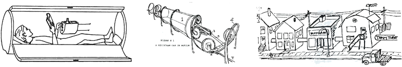 A review of Helixtram (L to R): The personal capsule; capsule in the spring-like "track"; application to Anytown U.S.A. - some redecoration may be required, depending