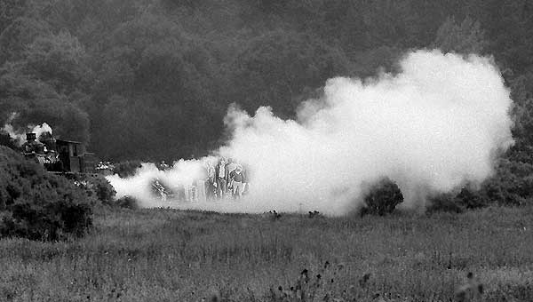 | It's about time to reopen the steam debate, we judge. Yep, we've seen all of the flimsy evidence showing that diesels are less labor intensive; are more versatile; have a much higher availability; and blah, blah, blah...than steam engines. We're not hardly convinced, though, so we appointed a Wx4 Blue Ribbon Commission drawn from the top scientists at our research facility in Bayonne, NJ (conveniently located next to the Christmas Depot). After several 'rounds' of research, they came up with: Careful consideration of all aspects of the issue leads us to find that Knob Creek Bourbon is smoother and possesses better flavor than Maker's Mark. Old Crow: PTOOEY! After a clarification of parameters by the Wx4 Executive Committee, the Commission issued a Final Report: Careful consideration of all aspects of the issue leads us to find that steam engines are smoother and possess better flavor than diesels. Further, steam engines in passenger service are SAFER than their diesel equivalents. The Executive Committee concluded that this was pretty darn skimpy findings for six weeks'-worth of expense account tab at George's Pub N Grub, so its members pressed the Commission for more information on the only coherent part of the report: SAFER. In response, the Commission pointed-out that the Committee apparently was too stupid to understand the definition of Final. So, after intense funding negotiations and a few more weeks at the Pub N Grub, we received this clarification: Steam engine boilers can be blown-down at will. AHA! said the Executive Committee, and we commanded the few Wx4 interns not suffering from scurvy to comb the Wx4 archives for photographic confirmation of the Commission's findings, and the interns did such a great job that we fed the ones that weren't picked up by La Migra. |