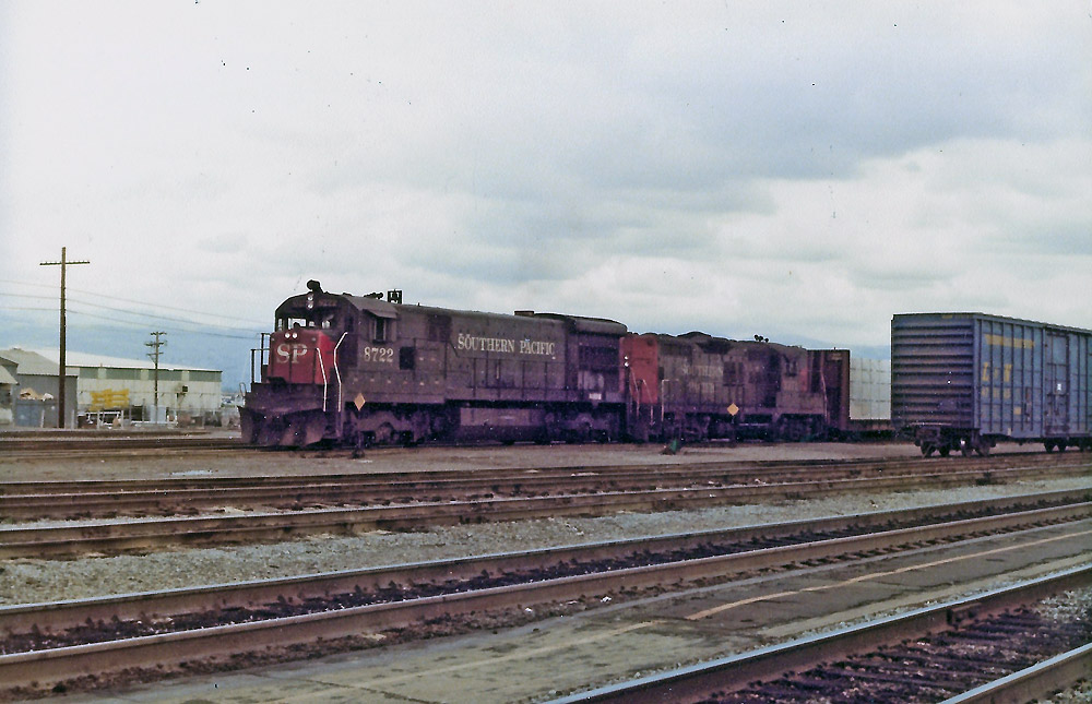 Taken at San Antonio Road in Mountain View. I'm not sure of this train's designation, but it may be the Mission Bay Hauler. 1988 |
