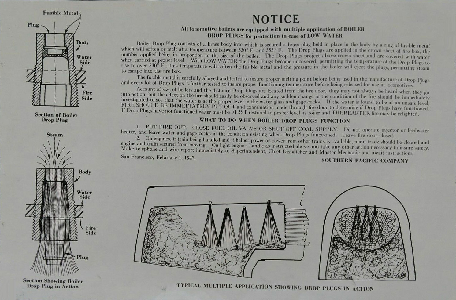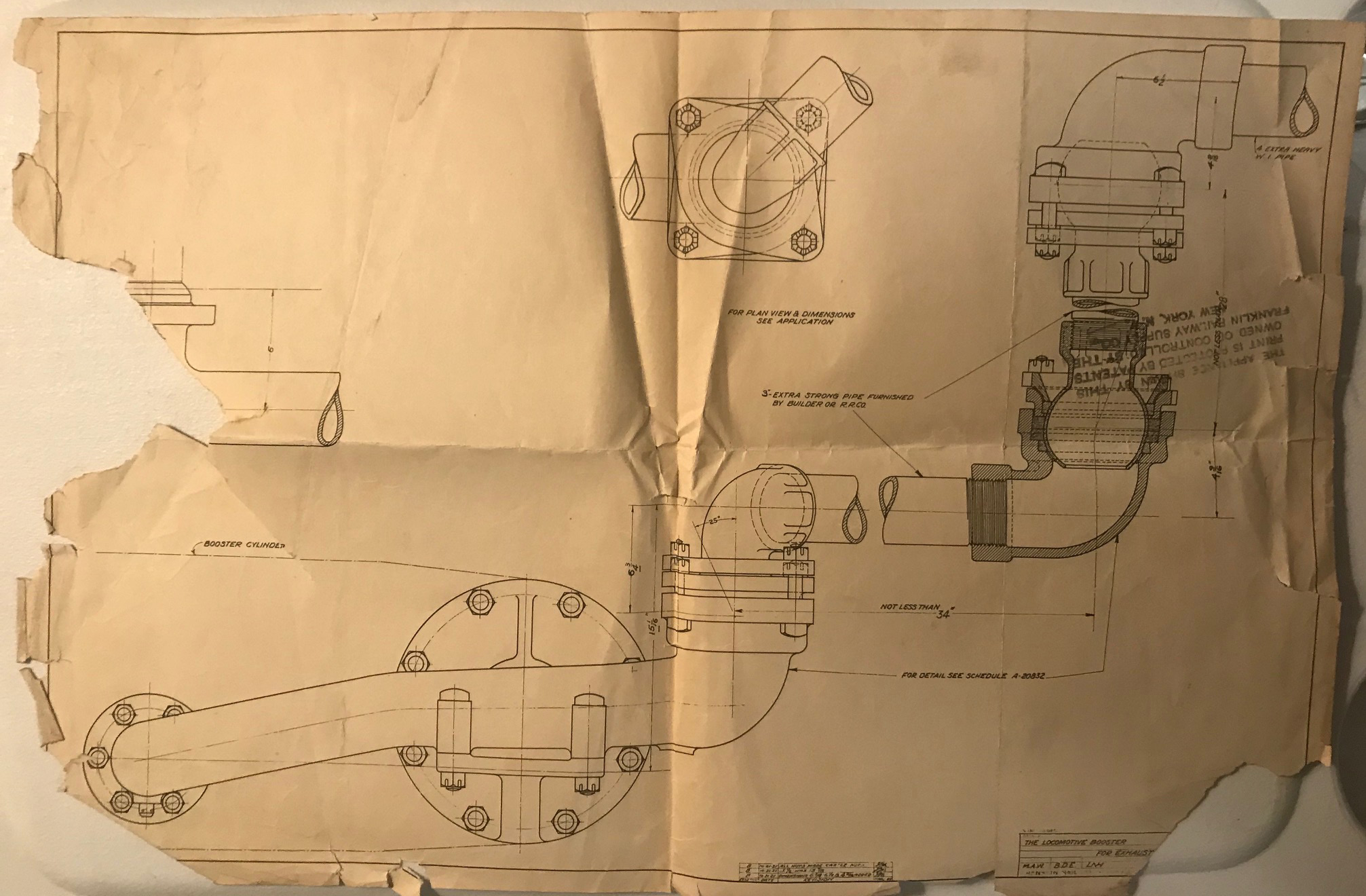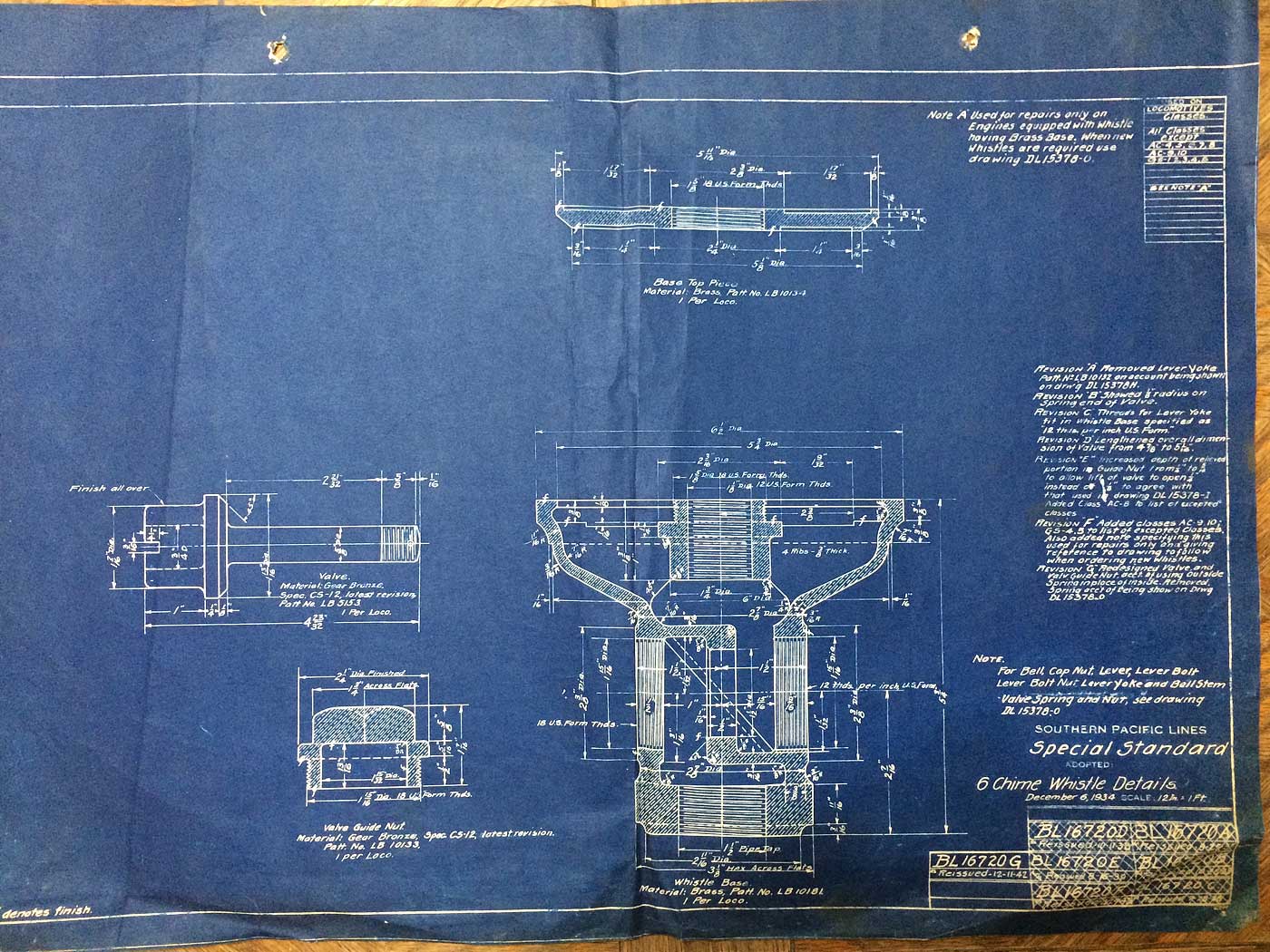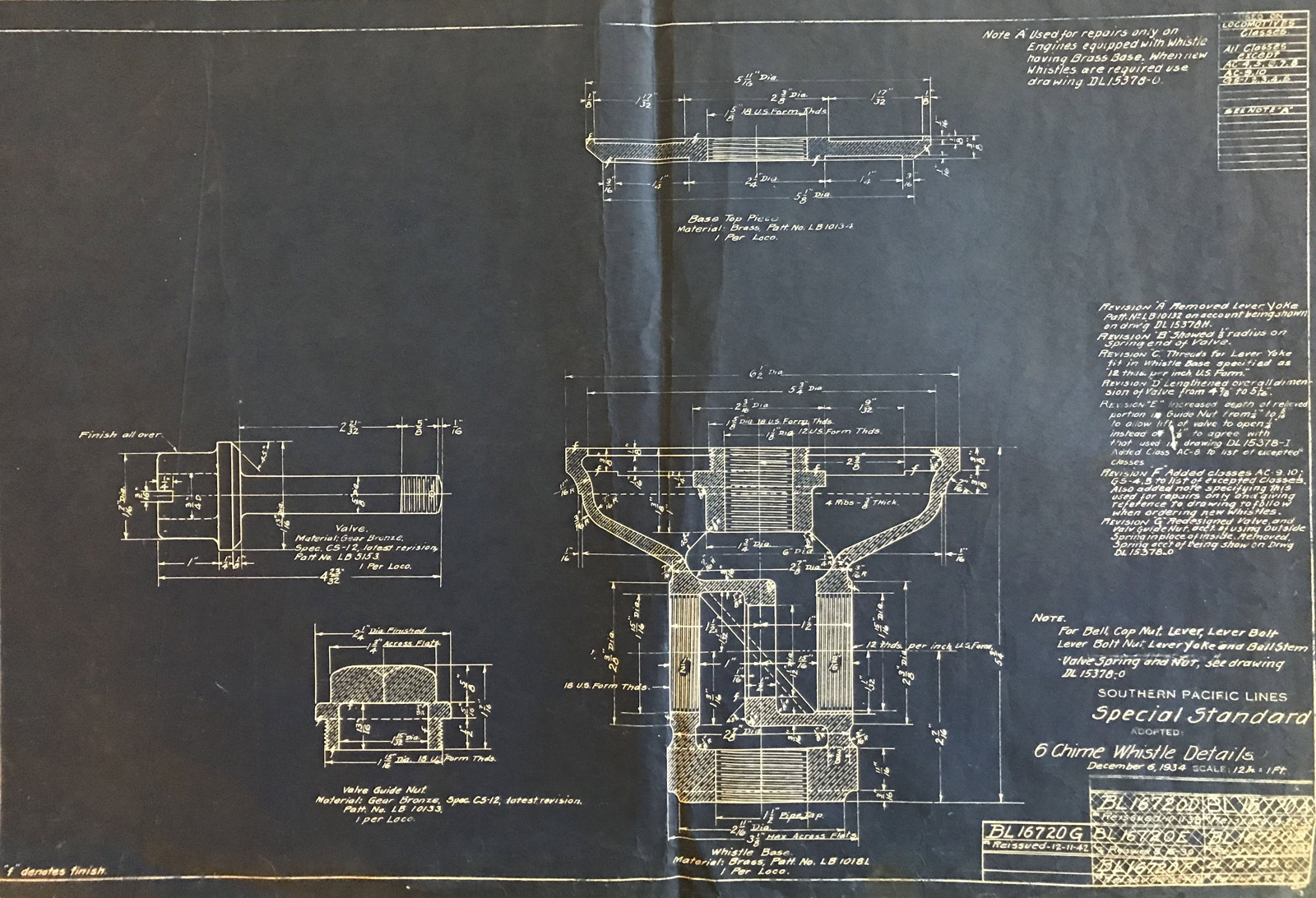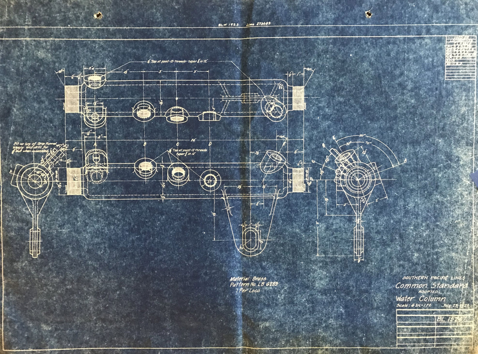 In 1958, after steam was done on Southern Pacific, somebody decided that the volumnuous collection of no-longer-needed steam locomotive drawings filed away at San Francisco's Bayshore Shops could be eliminated. Shop personnel thus began to fill a dumpster with many hundreds of drawings, much to the distress of the late Machinist Fred Boland. By then, Fred had accumulated nearly 40 years of Bayshore service, and these drawings held sentimental value for him, since he had worked with them throughout his long career. But moreover, he recognized their historical significance. Figuring that nobody cared, he began collecting them for preservation. Unfortunately, in that regard he was wrong. When his foreman discovered what Fred was doing, he ordered him to cease his efforts - these were "company secrets" that had to be destroyed, lest they fall into the wrong hands. Never-mind that they were obsolete, and that many of them were essentially those of suppliers that had been redrawn by SP draftsmen to conform to its Common Standard drawings.