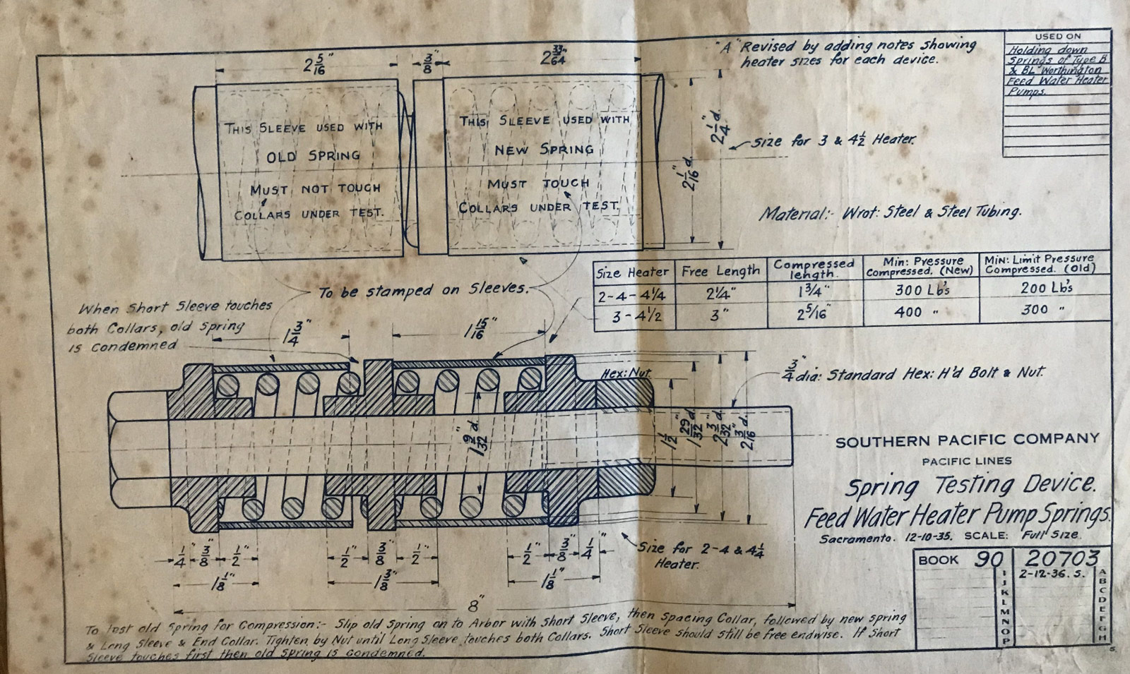 - Pump springs testing device; 12-10-35, rev. 2-12-36