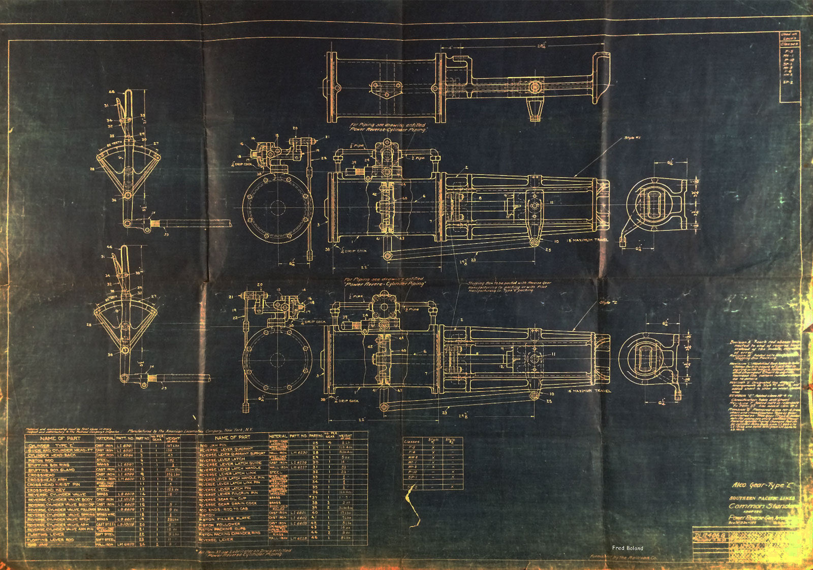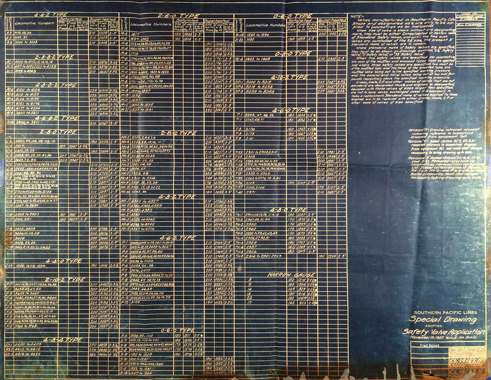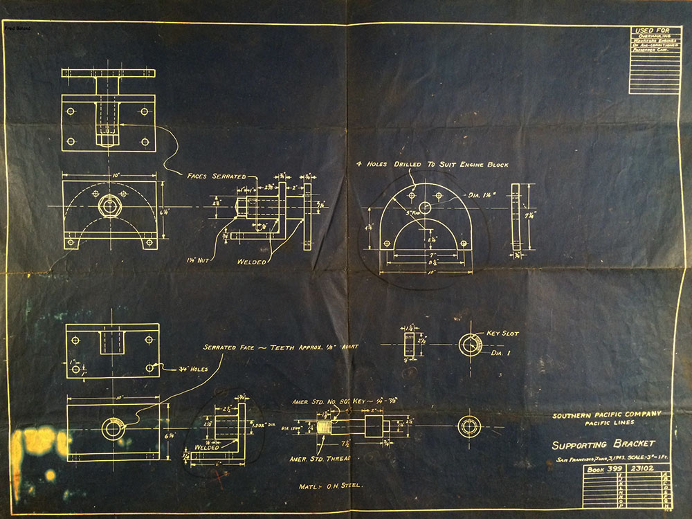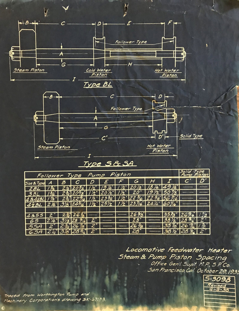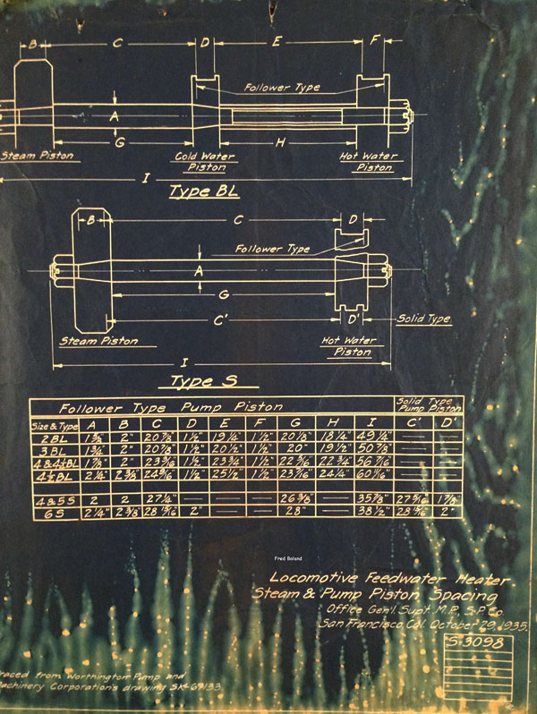 ------------Southern Pacific Steam Locomotive Blueprints - rescued by Bayshore Machinist Fred Boland