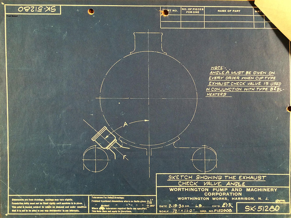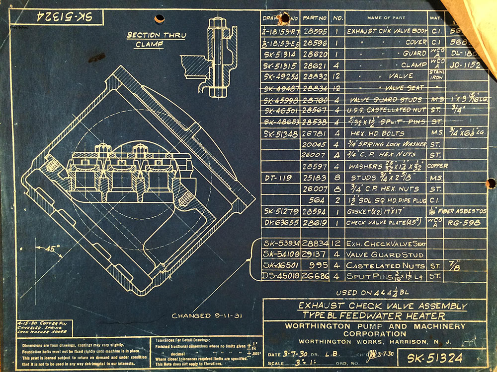 - Exhaust check valve, Worthington Type BL; 3-7-30, rev. 9-11-31